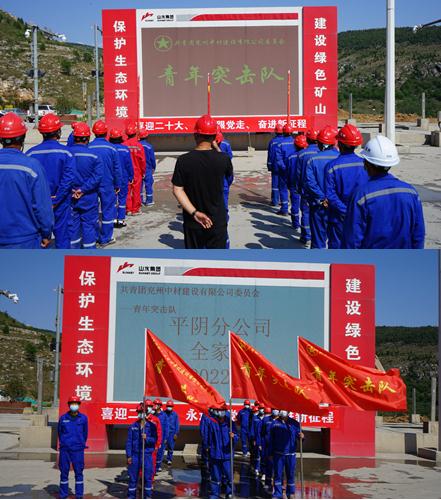 按照共青團中央下發(中青發【2022】5號)“喜迎二十大、永遠跟黨走、奮進新征程”主題教育實踐活動的通知要求,2022年5月2日,在公司和公司團委領導下,兗州中材建設有限公司平陰分公司組織項目青年骨干,在平陰山水礦山召開平陰分公司“青年突擊隊”成立大會。
