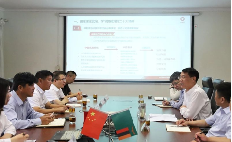 1月20日上午,蔣中文向中材礦山、蘇州中材、中材建設(shè)、智慧工業(yè)等在贊比亞團(tuán)隊(duì)講授主題為“自信自立、守正創(chuàng)新、勇?lián)鷩?guó)際化發(fā)展前沿重任”的黨課,并提出以下要求:一是強(qiáng)化理論武裝,充分學(xué)習(xí)貫徹黨的二十大精神。二是牢固樹(shù)立戰(zhàn)略思維,確保中材國(guó)際發(fā)展戰(zhàn)略在贊比亞有效落實(shí)。三是堅(jiān)持立足屬地發(fā)展,接續(xù)公司國(guó)際化發(fā)展偉大事業(yè)。