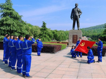 驚雷浮雕、陳獨秀銅像、新青年碑刻......走過柏林墓道,來到陳獨秀先生的墓前,項目執行經理張作鋼同志代表公司敬獻花圈,帶領全體黨員和青年同志,懷著無比崇高的敬意,恭敬地向墓碑三鞠躬,用行動表達對先生的敬仰之情。